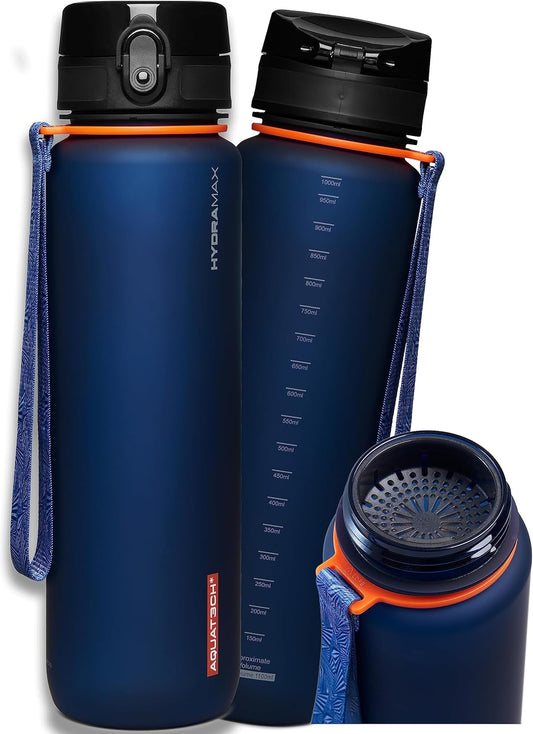 AQUAT3CH Hydramax Sports Water Bottle 1L - Water Bottle with Fruit Infuser – water bottle 1l - BPA-Free Plastic Gym Water Bottle – Leakproof Drinking Bottle for Running, Gym, Travel, Outdoor, Fitness